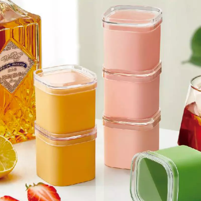 5.5cm inch wide design, 80ml gold capacity for frozen fruits, storing complementary foods, and storing sauces. One box can be used for multiple purposes and is highly versatile. The independent box design offers a unique flavor for each side. The transparent lid allows you to see exactly what's inside. The flexible silicone material brings a different experience. The mold comes out completely, allowing you to fully enjoy the refreshing summer taste.
