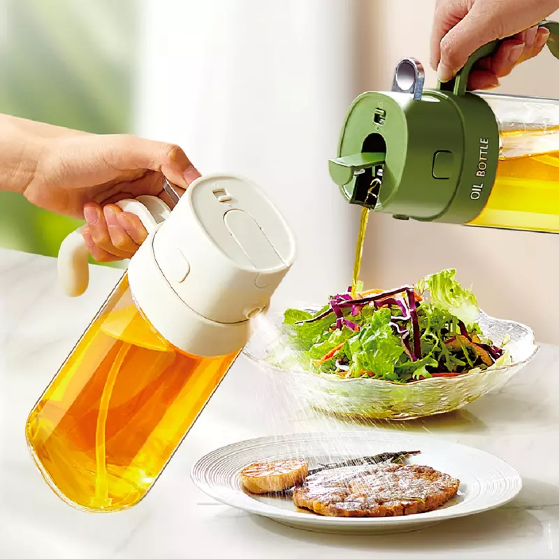 1. Dual-purpose oil sprayer, press the button to open the lid, it can be sprayed or poured.