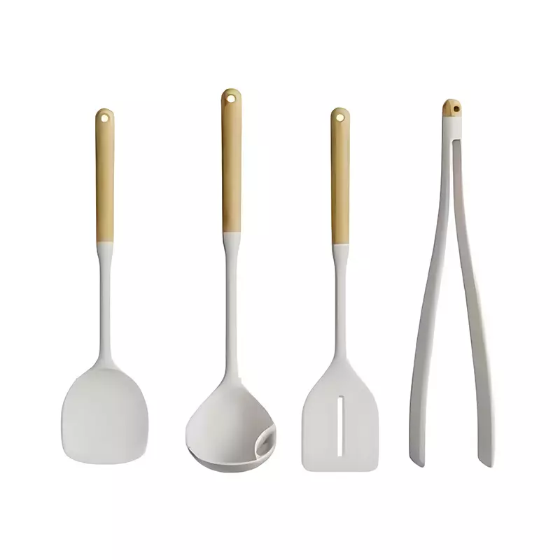 Beech Wood Handle Stainless Steel Core Silicone Spatula & Spoon Set